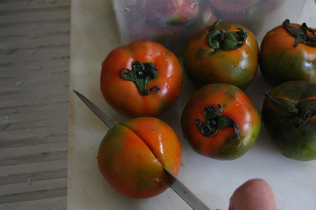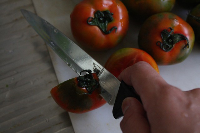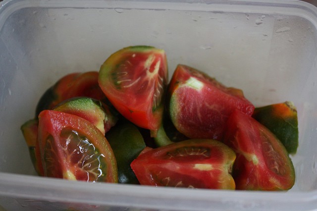 切完的蕃茄放置到自己準備的盒子或是盤子。