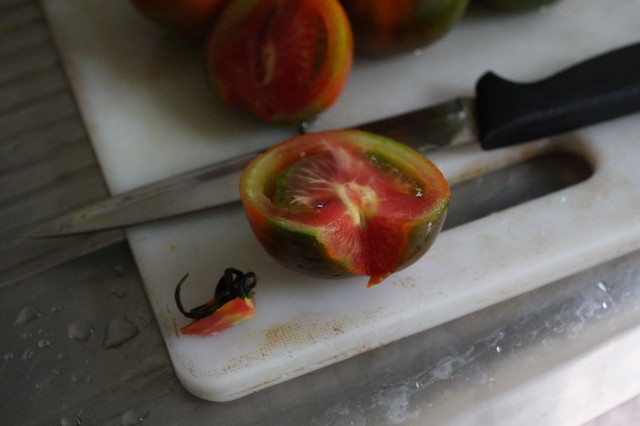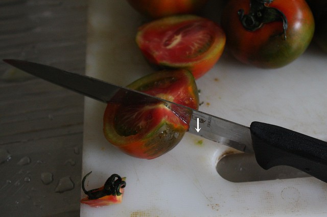再將番茄對半切一半[可以依個人喜好決定蕃茄大小]