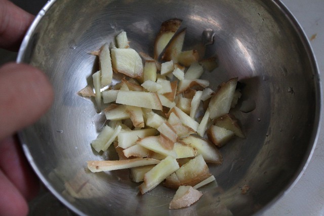 再來就是準備蕃茄沾醬,第一個是老薑,盡量要切小點
