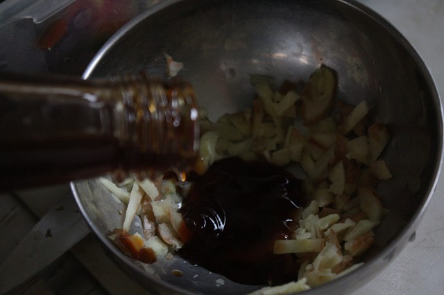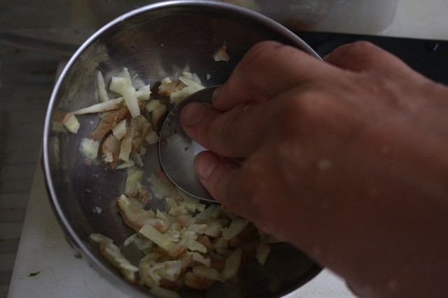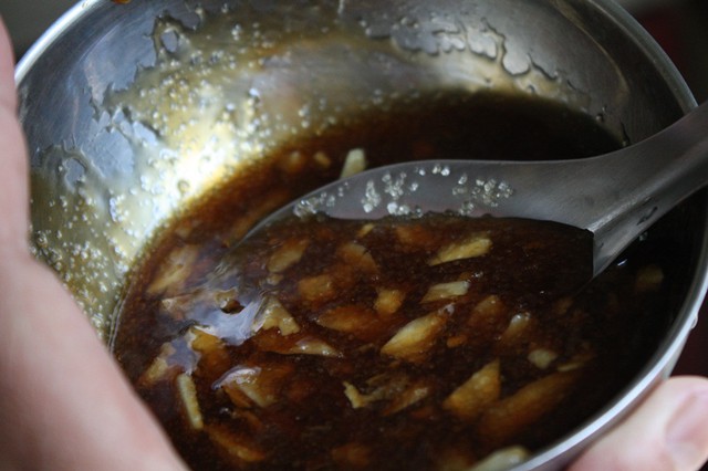 如果要讓沾醬有點薑味,可以用湯匙再將薑扁,讓薑汁滲透