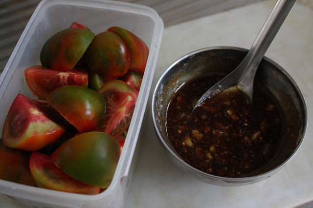 準備好蕃切沾醬後,就來享用我們的餐後點心 蕃茄切盤+沾醬。