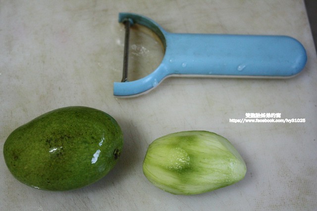 因為我挑的是台灣土芒果,所以比較小又青,用削水果皮