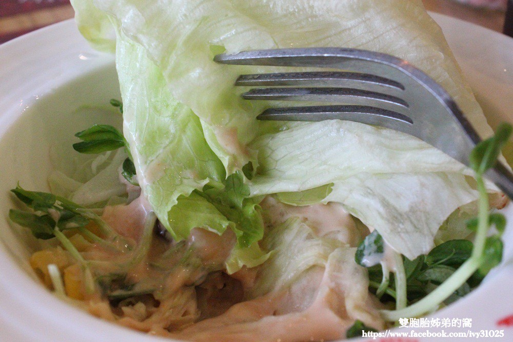 沙拉是餐前甜點,沒有無限食用,只有一人一份,千島沙