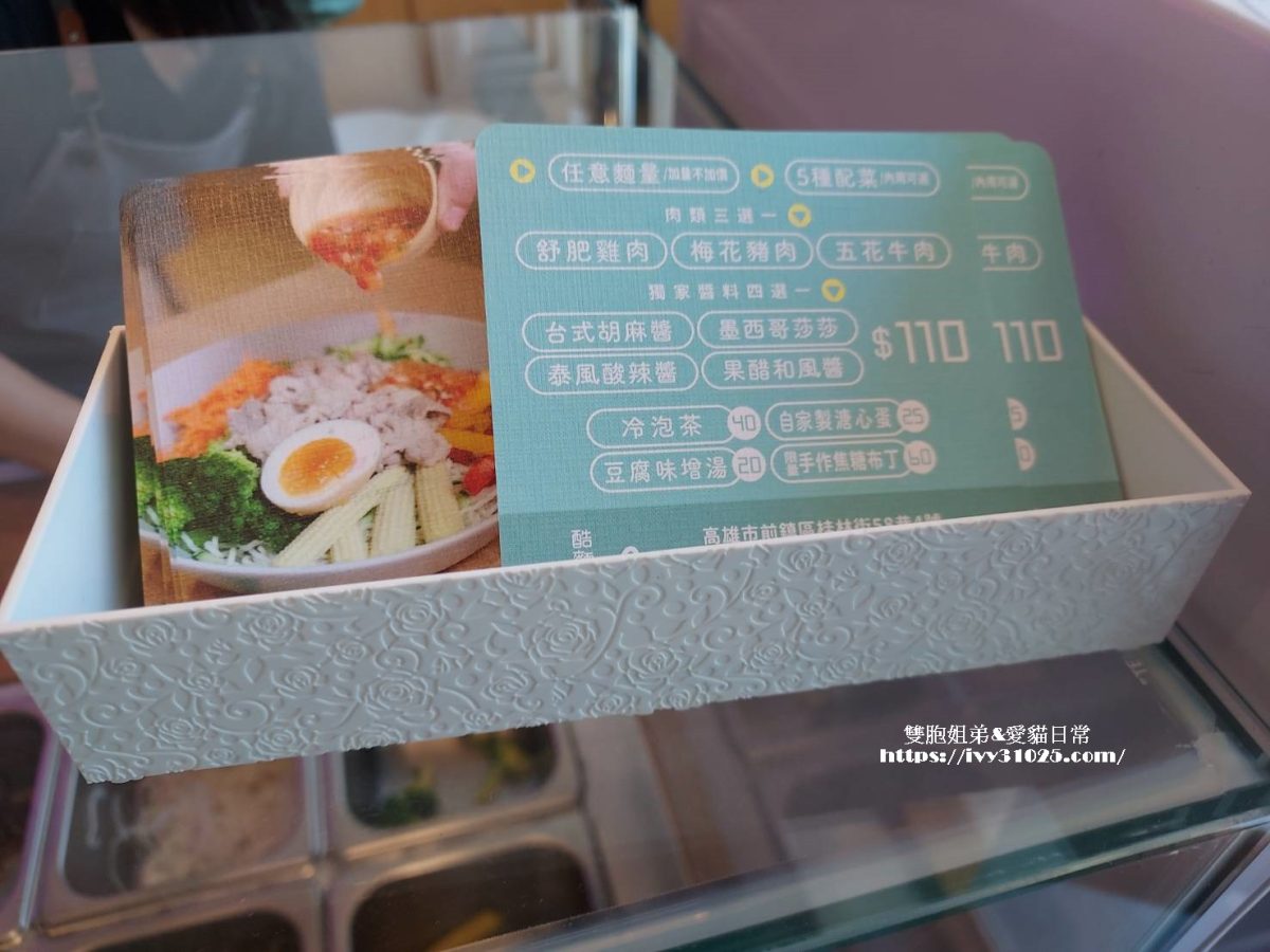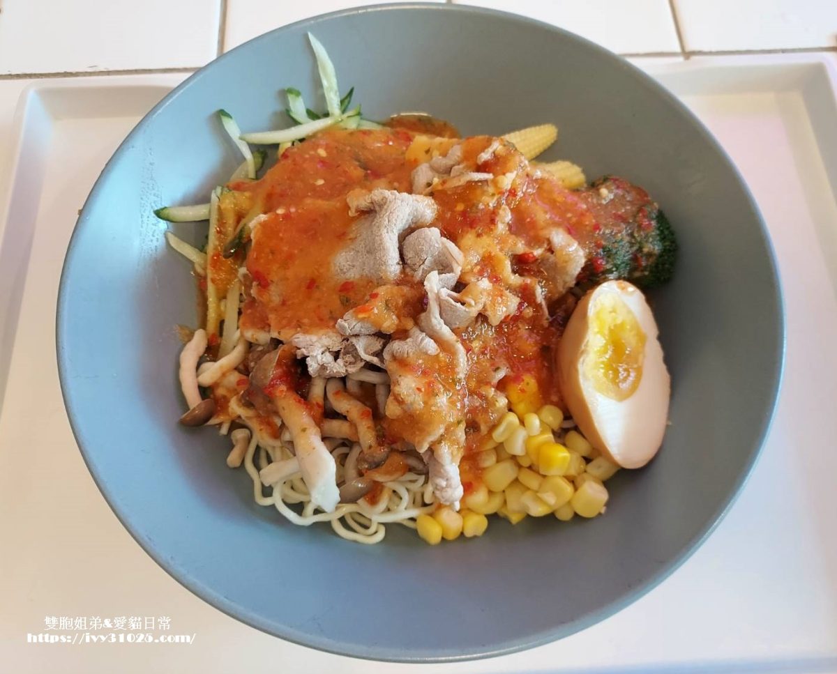 我選的是泰式酸辣醬,再加半顆溏心蛋,吃起來酸辣酸辣的冰涼清爽感,連素食者都可食用,不同於在市面上常見到的胡麻醬涼麵及配料都固定無法選擇。