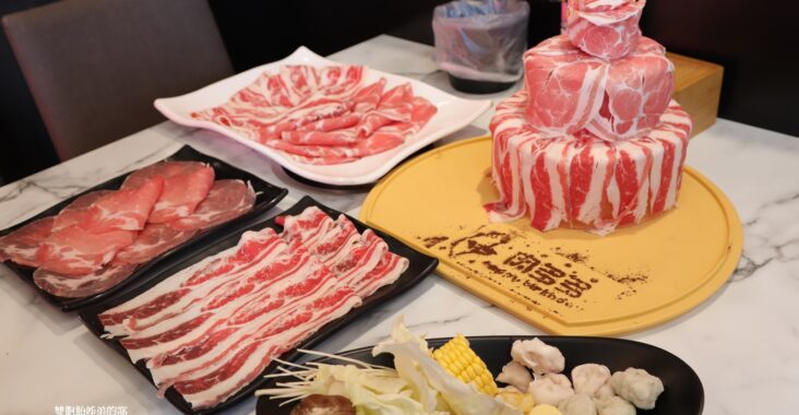 陸續上桌有肉多多生日浮誇蛋糕,服務人員還特地幫我用兩種不同肉品裝飾蛋糕,讓整體蛋糕看起來超有創意及特色,以及還有西班牙橄欖豬、濕式熟成牛腹肉、濕式熟成霜降牛等三種火鍋肉品,忽然有種會吃肉吃得飽到不行的直喊真的肉很多,因為怕吃不完我們點的肉盤,所以火鍋食材拿得不多。