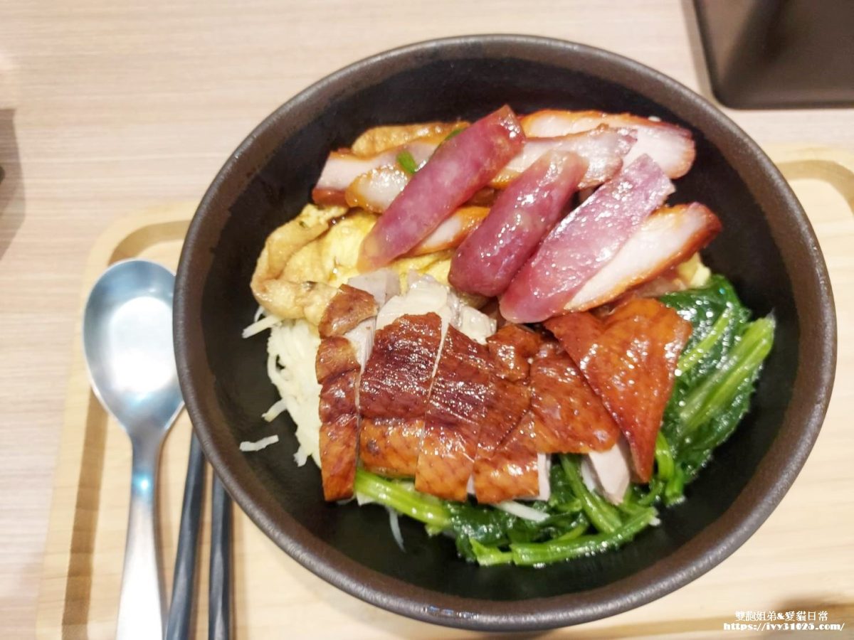 這是我點的三寶飯,來吃燒臘便當,就是要一次吃有很多種類的肉類的便當,滿足我愛吃肉的多項選擇。